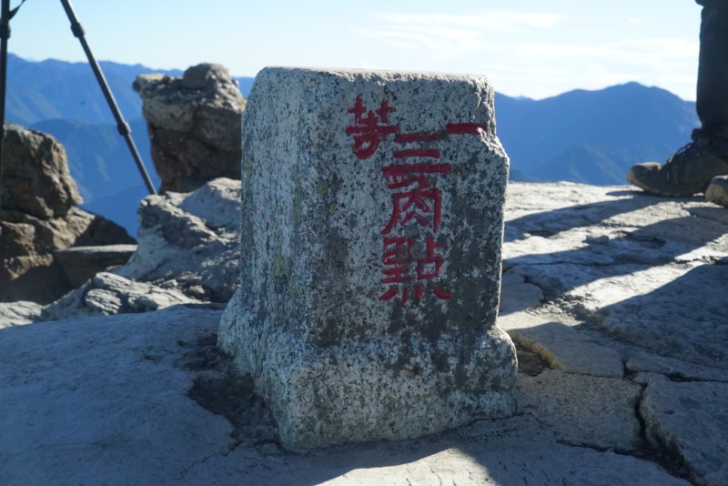 台湾は一時日本統治下であったため、山頂には見慣れた三角点があった