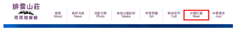 手順は、排雲山荘HP(https://go17713.ego.tw/)からMealに進み、