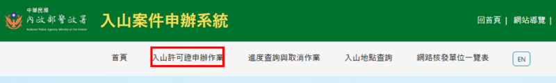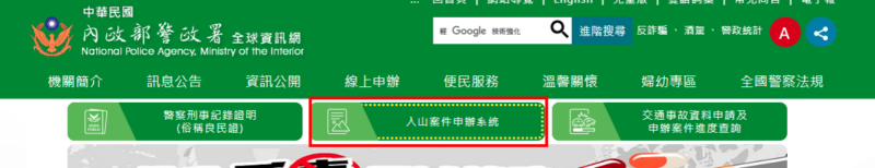 台湾警察HP(https://www.npa.gov.tw/ch/index)⇨入山案件申辦系統に進み、